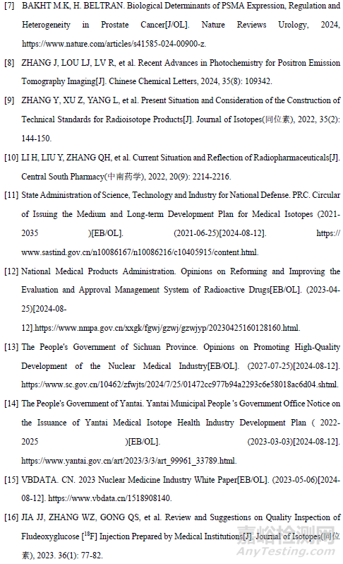 本課題組深入了解我國現(xiàn)階段核素生產(chǎn)、放藥研發(fā)、臨床使用、檢驗檢測、監(jiān)督管理等方面的現(xiàn)實情況,剖析制約發(fā)展因素,提出發(fā)展建議,以期為我國放藥產(chǎn)業(yè)高質量發(fā)展提供參考。