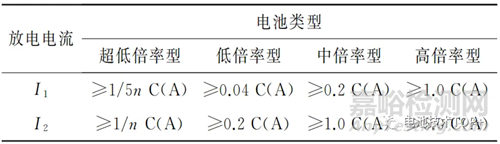 JISC 8715-1:2018將試樣分為四種類型:超低倍率型(S)、低倍率型(E)、中倍率型(M)、高倍率型(H),四種類型樣品在25 ℃下的最大持續(xù)放電電流分別不低于以下值:0.125C、0.5C、3.5C、>3.5C。