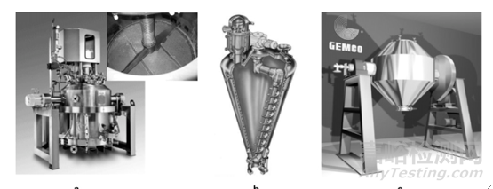 圖2常用工廠干燥設(shè)備(a)三合一(b)單錐(c)雙錐;(圖片來源文獻2)