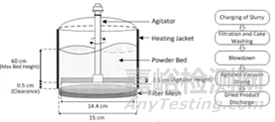 但是對于三合一過濾洗滌干燥設(shè)備,很多品種會遇到的棘手問題是,即使增加了壓濾和吹干的時間,甚至延長至數(shù)十小時,初始濾餅濕含量仍然非常高。這個解決方案需要從三合一工作原理尋找。下圖4是一個用于小試干燥過程研究的小型三合一設(shè)備的工作原理示意圖。三合一過濾篩和攪拌出料口之間會有約0.5cm高度區(qū)域的“盲區(qū)”,物料在這個區(qū)域內(nèi)會形成致密的“底板粉”,類似充當了“蓄濕”的作用,在三合一干燥過程中,底板粉蓄積的溶劑,會持續(xù)潤濕主體濾餅,導致開啟攪拌過程中三合一結(jié)塊和結(jié)球嚴重。
