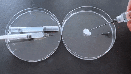 可酶解:如上文所述,AG15 是由β-(1→4)鍵連接的多糖類(lèi),雖然透明質(zhì)酸和瓊脂糖的結(jié)構(gòu)有很大不同,但透明質(zhì)酸酶也可以在β-(1→4)鍵處水解瓊脂糖,產(chǎn)生二聚體、四聚體和六聚體新瓊脂寡糖。在瓊脂糖中加入透明質(zhì)酸酶(如 Hylenex)后也可以觀察到六聚體的存在,因此在栓塞的情況下,可以選擇用生理鹽水、注射用水分散 AG15(如下圖),也可以使用透明質(zhì)酸酶水解,栓塞風(fēng)險(xiǎn)大大降低。