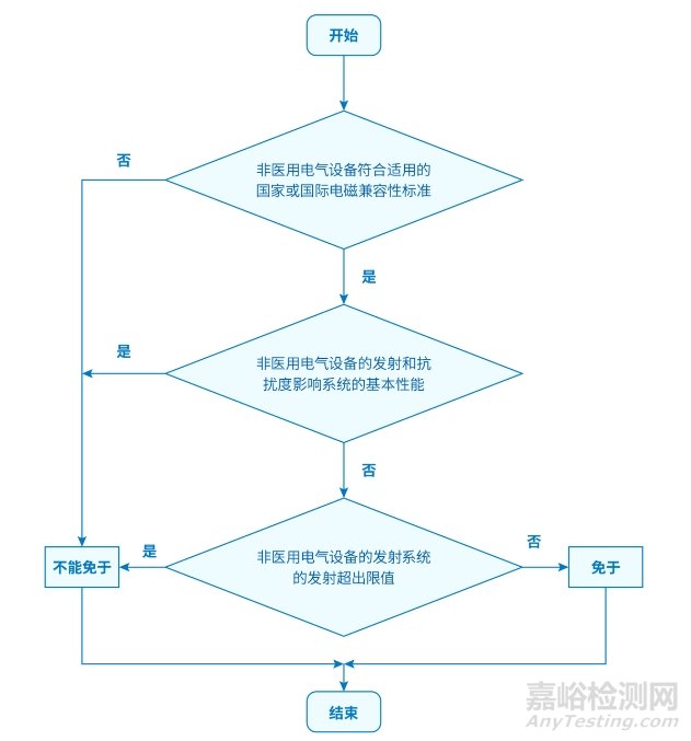 圖1 ME系統(tǒng)內(nèi)的非醫(yī)用電氣設(shè)備是否免于YY 9706.102-2021標(biāo)準(zhǔn)電磁兼容性試驗(yàn)要求的判定流程