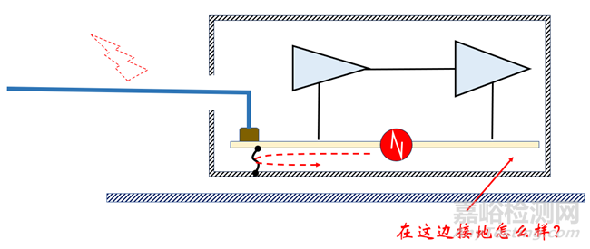 圖4 將PCB的電路地在電纜連接的部位與金屬機箱連接起來