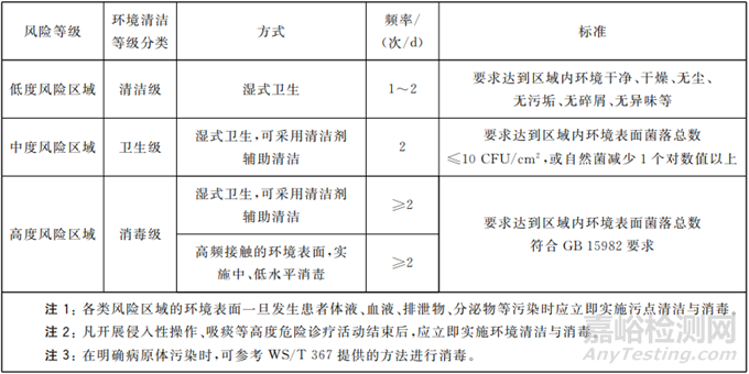 不同風(fēng)險區(qū)域應(yīng)實施不同等級的環(huán)境清潔與消毒管理: