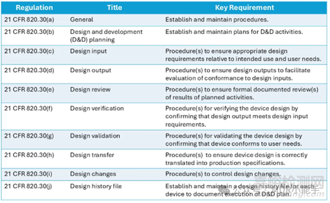 Figure 3: Summary of medical device design control requirements according to 21 CFR 820.30. Source: FDA.