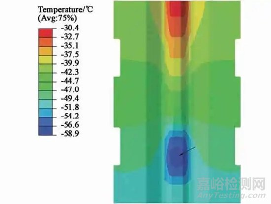 圖11 模具液氮制冷后的溫度場(chǎng)分布
