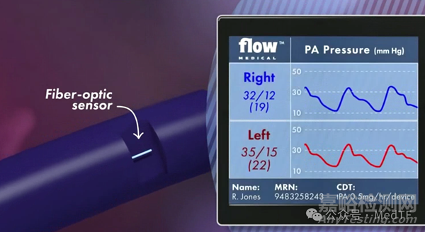Flow Catheter與Thrombolex的Bashir有兩大區(qū)別,其中一個區(qū)別在于導管遠端有一個內嵌的光纖傳感器,能夠在溶栓時實時監(jiān)測左右肺動脈壓力。當然左右肺動脈壓力達到一致時,提示醫(yī)生可以停止溶栓,并可以取出導管。從而實現(xiàn)減少溶栓時藥物釋放,提高溶栓安全性。
