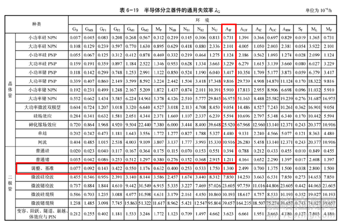 3)器件均為國產(chǎn)器件,使用GJB/Z 299C-2006,查各元器件的失效率和修正系數(shù);