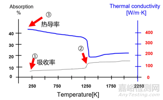 如「圖3 熱導率與吸收率」所示為純銅在不同溫度下的熱導率以及對1um波段紅外激光的吸收率變化曲線,由圖可見,室溫下的固態(tài)純銅吸收率僅有3%,隨著溫度的上升到1250K時達到8%左右,僅提高了5個百分點;同時熱導率則從最高的400W/m*K緩慢降低到330W/(m*K)左右。即在固態(tài)時,純銅保持著極低的激光吸收率和極高的導熱效率,這使得激光加工過程極為困難,需要用到極高的激光功率密度。