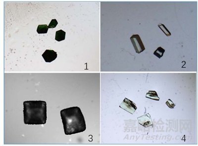 以上晶體照片中,1 號和 2 號是在顯微鏡下觀察質(zhì)量很好的單晶樣品,可以直接上機測試;3 號樣品表面附著一層粉末狀的物質(zhì),測試時需要切掉這層附著物,4 號樣品部分質(zhì)量好,部分有裂紋或多顆晶體粘在一起,測試時需要切割掉有裂紋部分或附著的其他晶體。