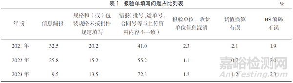 2.1 報(bào)驗(yàn)單填報(bào)常見問題分析