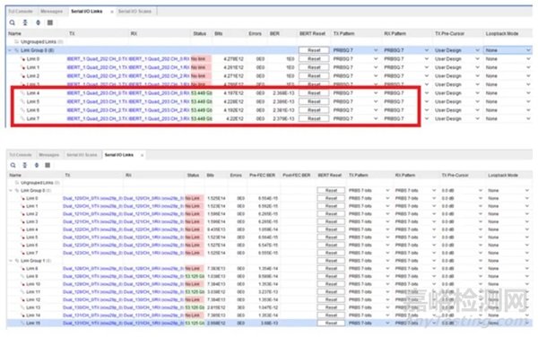 由于Cable不是QSFPDD,所以有一半的lane無效??梢钥吹皆跍y試結(jié)果如下,可以看到VPK120要選PRBSQ7才能和VCU129的PRBS7正常link: