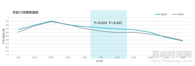 通過對比術(shù)后3個(gè)月和6個(gè)月的離焦曲線,MF60有明顯更佳的中距離視力(視力差異有統(tǒng)計(jì)學(xué)意義)。
