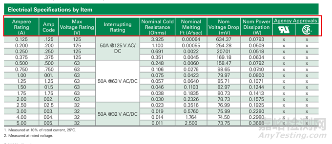 額定電壓降(Nom Voltage Drop):指的是保險管在額定電流條件下,其兩端的電壓降。