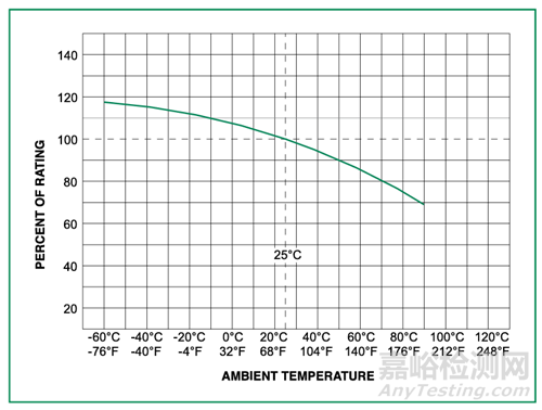 除了以上參數(shù),保險管的額定值也會隨著溫度的上升而下降,如下圖所示: