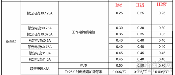下面是保險絲在醫(yī)療行業(yè)使用的通常的一個降額要求,強制三級降額,推薦實現(xiàn)二級降額: