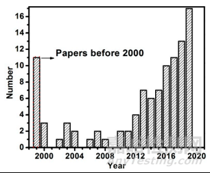 電機(jī)作為將電能轉(zhuǎn)化為機(jī)械能的裝置,已廣泛應(yīng)用于工業(yè)設(shè)備中,如電動(dòng)汽車、電動(dòng)飛機(jī)、電動(dòng)船舶等。硅鋼是一種高硅(2-5.5wt%Si)薄帶(0.2-0.65mm)鋼,是電機(jī)定子和轉(zhuǎn)子中最常用的軟磁性材料。在鐵中加入硅會(huì)降低矯頑力、增加電阻率。此外,在交變磁場(chǎng)環(huán)境中,薄帶厚度的減少可降低硅鋼的渦流損失。電機(jī)的定子和轉(zhuǎn)子鐵心由數(shù)百張硅鋼疊裝制成,可以減少渦流損失,提高效率。在電機(jī)應(yīng)用中,疊片鐵心兩側(cè)均有絕緣涂層,以阻斷層間渦流。通常,硅鋼鐵心疊裝的目的是確保疊裝片的機(jī)械強(qiáng)度,而連接工藝往往會(huì)帶來絕緣涂層的損傷、微觀結(jié)構(gòu)的變化、殘余應(yīng)力的引入等,從而引起磁性能的退化,因此在機(jī)械強(qiáng)度和磁性能之間的權(quán)衡是一個(gè)巨大的挑戰(zhàn)。此外,硅鋼的疊裝結(jié)構(gòu)不同于傳統(tǒng)的重疊或?qū)?,研究硅鋼疊裝連接工藝對(duì)加快高質(zhì)量電機(jī)制造至關(guān)重要。圖1顯示了Scopus數(shù)據(jù)庫中關(guān)于硅鋼疊裝連接工藝技術(shù)的論文數(shù)量。如圖所示,這是一個(gè)近十年來快速發(fā)展的新興研究課題。