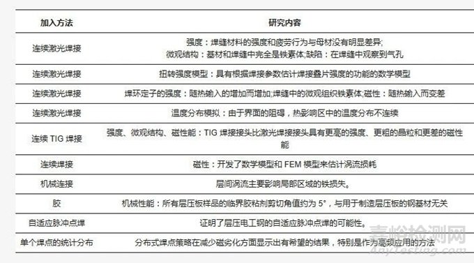 表 1.層壓電工鋼連接的代表性研究