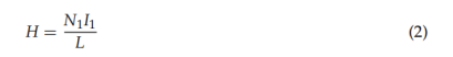式中,N1為主繞組匝數(shù),I1為主繞組中的電流,L為等效磁路的長(zhǎng)度,可由公式(3)計(jì)算得到: