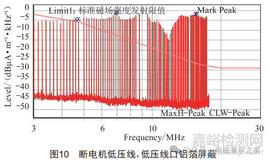 第四步:斷電機(jī)低壓線,低壓線口鋁箔屏蔽,測試結(jié)果如圖10所示。