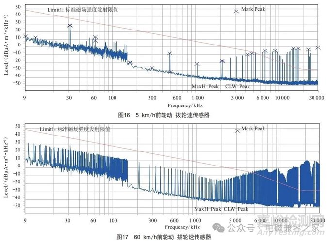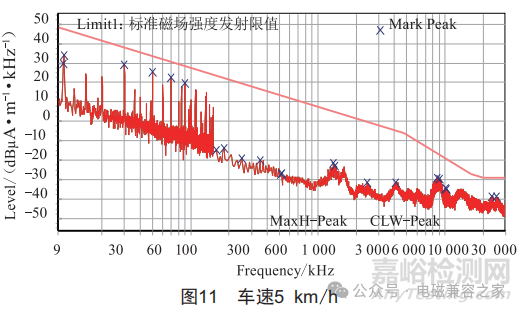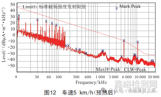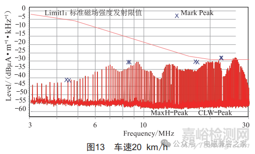 接下來進(jìn)行車速20km/h的測試,測試頻段3~30MHz,測試結(jié)果如圖13所示。