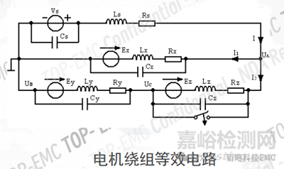 產生的火花擊穿換向器與換向器之間的間隙(結電容,Cx,Cy,Cz)進成回路,此為電機噪聲源(激勵源)。