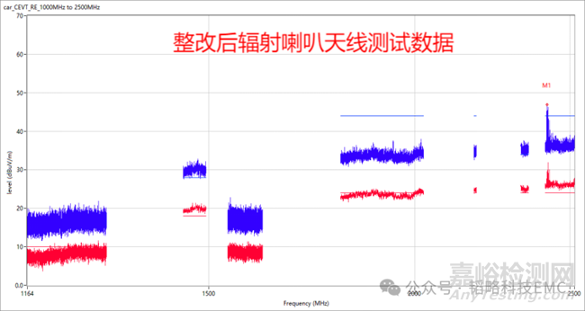 通過以上手段,1GHz以下頻段都能通過等級五的測試,說明大部分噪聲已經(jīng)被抑制,但是在高頻部分還有超標。