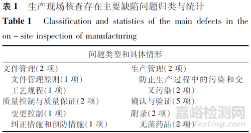 參考CFDI發(fā)布的《藥品注冊(cè)核查要點(diǎn)與判定原則(藥學(xué)研制和生產(chǎn)現(xiàn)場(chǎng))(試行)》及2010版《藥品生產(chǎn)質(zhì)量管理規(guī)范》,對(duì)研制現(xiàn)場(chǎng)及生產(chǎn)現(xiàn)場(chǎng)發(fā)現(xiàn)的問題進(jìn)行歸類統(tǒng)計(jì),詳細(xì)情況如下。