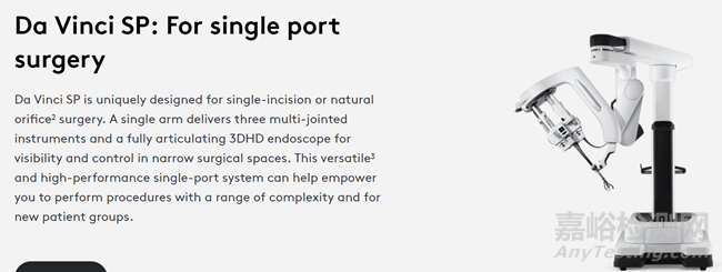 2024年1月,達芬奇單孔(SP)手術機器人獲得CE標志認證,用于腹盆腔內窺鏡、胸腔鏡、經(jīng)口耳鼻喉科、經(jīng)肛門結直腸和乳腺外科手術。