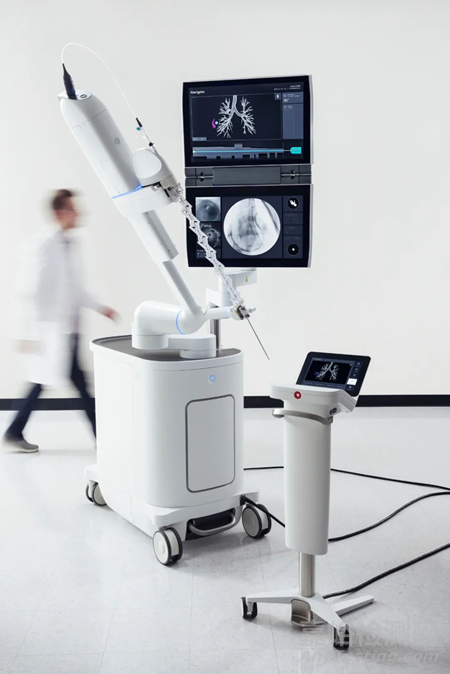 該系統(tǒng)是直覺醫(yī)療研發(fā)的一種用于肺部微創(chuàng)診療的機器人平臺,主要用于肺部結節(jié)的活檢,肺外周病變的診斷和治療。