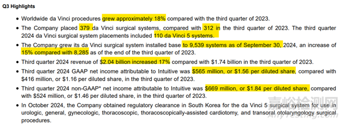 2024年第三季度,該公司安裝了379臺達芬奇手術系統(tǒng),包括110臺達芬奇5系統(tǒng)。