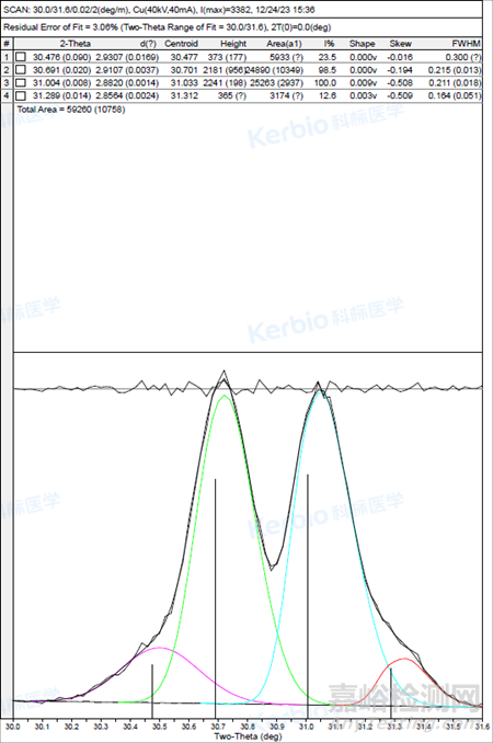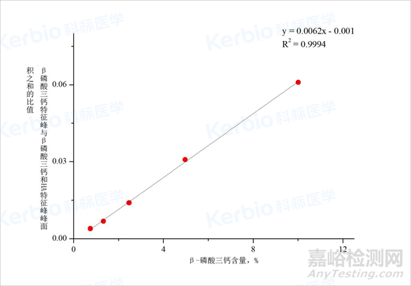 一般先對樣品進(jìn)行一個全掃,獲得樣品的全掃XRD衍射圖譜,和國際衍射數(shù)據(jù)中心(ICDD)的標(biāo)準(zhǔn)PDF卡片庫卡片對比,確定樣品的相組成。確定樣品相組成后,通過混合羥基磷灰石標(biāo)準(zhǔn)品和雜質(zhì)相標(biāo)準(zhǔn)品粉末,制成不同濃度的羥基磷灰石純校準(zhǔn)品與雜質(zhì)相純校準(zhǔn)品的混合物,繪制與雜質(zhì)相相關(guān)的羥基磷灰石的校準(zhǔn)曲線。采集樣品的X衍射圖譜,計算所選峰的積分強(qiáng)度并與校準(zhǔn)曲線進(jìn)行比較,計算出雜質(zhì)相的相應(yīng)含量。