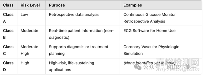 CDSCO 已正式通告了多個不同風險等級的 SaMD 器械: