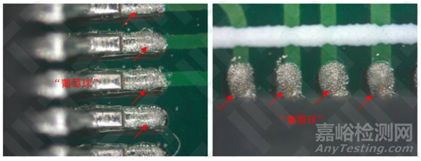 對(duì)NG PCBA“葡萄球”焊點(diǎn)(酒精清洗后)表面進(jìn)行顯微分析,結(jié)果如下: