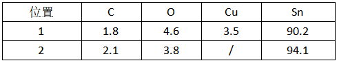 表1. NG焊點(diǎn)表面EDS結(jié)果(wt.%)