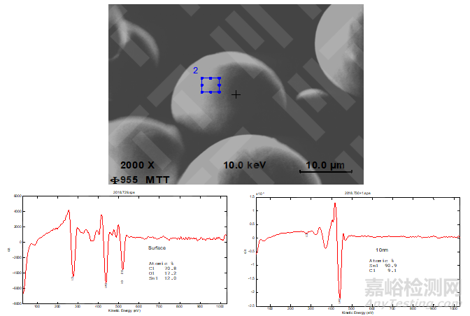 圖4.A款錫粉AES測(cè)試位置及圖譜典型圖片