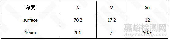 表3. A款錫粉深度分布成分測(cè)試結(jié)果(At%)
