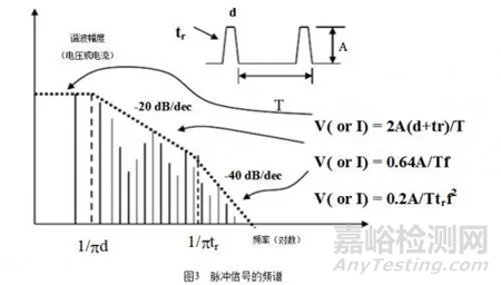 在EMC中,除了基本頻率外,還需考慮諧波因素,通常取十倍頻,但在數(shù)字電路中卻有些不同,比如在時(shí)鐘電路和邏輯門(mén)電路中,輻射帶寬與數(shù)字信號(hào)的上升沿或下降沿有關(guān)系,而不是數(shù)字信號(hào)的重復(fù)周期,其關(guān)系為:rtF?/1max?,其中rt是脈沖的上升沿時(shí)間。例如,典型時(shí)鐘驅(qū)動(dòng)的邊沿速率是2ns,此時(shí),maxF≈160MHz,再考慮十倍頻,則此時(shí)鐘電路可能產(chǎn)生直到1.6GHz的輻射帶寬。所以在選擇器件時(shí)要選擇慢速的邏輯器件系列,因?yàn)槠骷?duì)電磁輻射貢獻(xiàn)的大小與工作頻率無(wú)直接關(guān)系而只取決于邊沿速率(這和從電路功能設(shè)計(jì)上選擇快速器件是矛盾的,在電路設(shè)計(jì)時(shí)需要折中考慮)。還有從器件的抗擾能力上來(lái)說(shuō),CMOS器件是最好的,因?yàn)樗脑肼暼菹薷?。從封裝上來(lái)說(shuō),BGA是最好的,因?yàn)樗囊€很短。脈沖信號(hào)的頻譜如圖3所示。