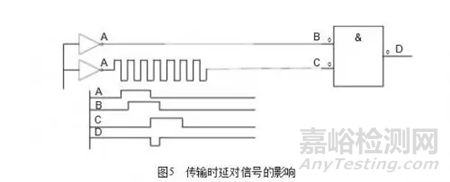 (3)保證信號(hào)在PCB上可靠的傳輸,確保信號(hào)的完整性。這里面主要的問(wèn)題一般包括時(shí)延、阻抗不匹配、地彈跳、串音等。這不但影響到電子器件的穩(wěn)定工作,還會(huì)產(chǎn)生電磁干擾。一般在高速邏輯設(shè)計(jì)中最容易碰到時(shí)延問(wèn)題,處理不好會(huì)產(chǎn)生不希望的脈沖干擾。傳輸時(shí)延對(duì)信號(hào)的影響如圖5所示。