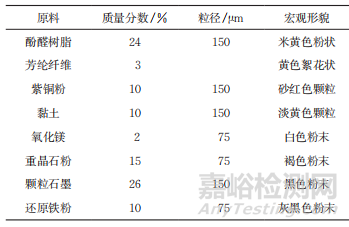 表1 酚醛樹(shù)脂基摩擦材料的配方及原料