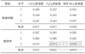 上述研究表明,納米顆粒和稀土的添加都可以使樹(shù)脂基摩擦材料的熱穩(wěn)定性和摩擦磨損性能有不同程度的提高,然而目前有關(guān)稀土和納米顆?;旌咸砑痈男缘难芯枯^少。為此,作者制備了CeO2、Y2O3和納米SiO2混合改性酚醛樹(shù)脂基摩擦材料,通過(guò)正交試驗(yàn)進(jìn)行配方設(shè)計(jì),結(jié)合極差分析研究了改性材料添加量對(duì)力學(xué)性能和摩擦磨損性能的影響,確定了最佳混合配方,分析了改性后材料增韌耐磨的機(jī)理,以期為稀土混合納米顆粒改性樹(shù)脂基摩擦 材料的開(kāi)發(fā)及應(yīng)用提供試驗(yàn)依據(jù)和理論參考。