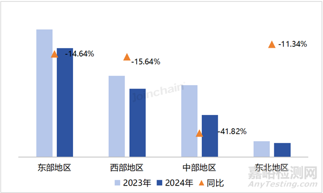 2024年(截至12月20日),我國(guó)各地區(qū)醫(yī)療器械公開招中標(biāo)采購(gòu)規(guī)模均呈現(xiàn)下降趨勢(shì),東部地區(qū)依然是我國(guó)醫(yī)療器械市場(chǎng)的主要區(qū)域,且采購(gòu)占比有所上升;中部地區(qū)規(guī)模下降幅度最大,同比下降幅度超40%,采購(gòu)占比也顯著降低;西部地區(qū)和東北地區(qū)采購(gòu)占比略有上升。