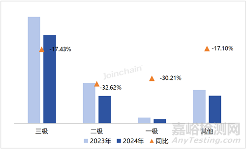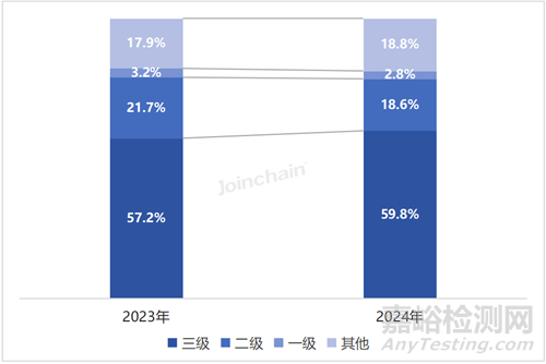 圖 6 2023-2024年我國(guó)醫(yī)療器械各等級(jí)醫(yī)院采購(gòu)規(guī)模占比變化
