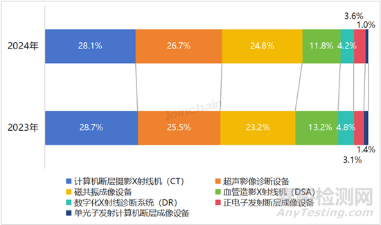 圖 8 2023-2024年我國(guó)醫(yī)學(xué)影像設(shè)備細(xì)分產(chǎn)品市場(chǎng)規(guī)模占比分布