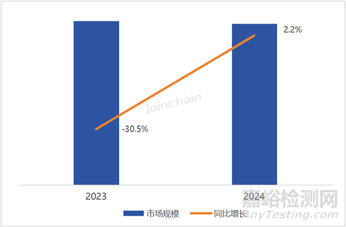 圖 1 2023-2024年我國(guó)醫(yī)療器械公開招中標(biāo)市場(chǎng)規(guī)模及同比變化