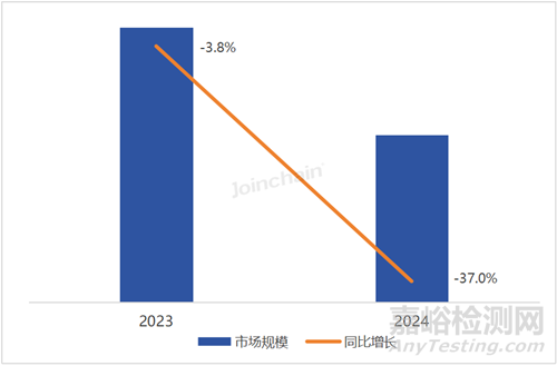 圖 11 2023-2024年我國(guó)體外診斷設(shè)備公開招中標(biāo)市場(chǎng)規(guī)模及同比變化