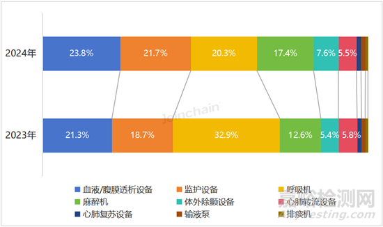 圖 16 2023-2024年我國(guó)生命支持類設(shè)備細(xì)分產(chǎn)品市場(chǎng)規(guī)模占比分布