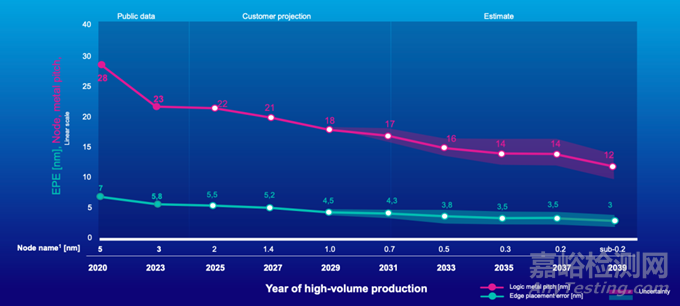 具體而言,在先進(jìn)制程領(lǐng)域,芯片技術(shù)節(jié)點(diǎn)微縮將繼續(xù)。如下圖所示,從2025年的2nm發(fā)展到1.4nm、1nm一直到sub-0.2。