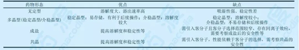 表1:不同藥物固體形態(tài)的優(yōu)缺點