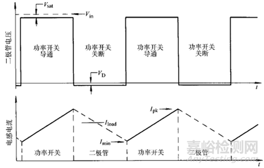 在開關(guān)管開關(guān)的過程中,電感上電流的變化。